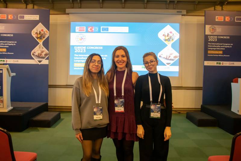 Bölümümüz öğretmen adayları, öğretim elemanlarımızdan Dr. Öğr. Üyesi Elif Bozyiğit’in araştırmacı olarak yer aldığı EUREDIE (European Researcher Development and Engagement for Interculturality and Equity) projesinin çoğaltıcı etkinliği kapsamında, İstanbul'da gerçekleşen “The International Congress on Interculturality and Equity in Language Education (EUREDIE Congress- 2023)” adlı kongreye katılım sağladı.