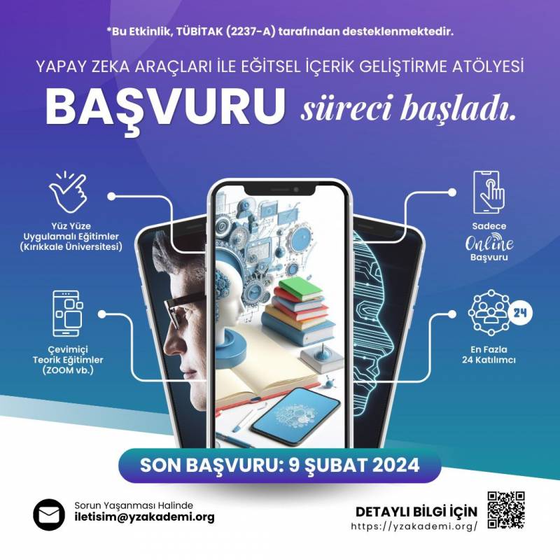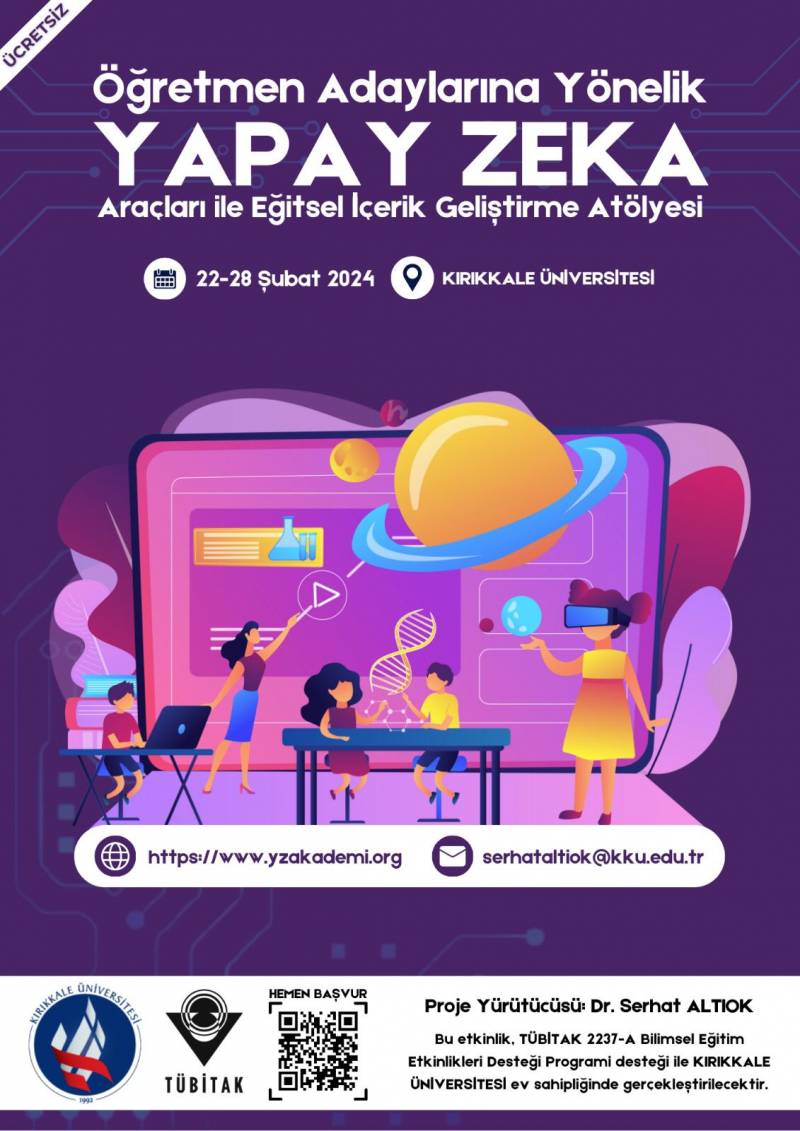 Size, TÜBİTAK 2237-A tarafından düzenlenecek Yapay Zeka Araçları ile Eğitsel İçerik Geliştirme Atölyesi için bilgiler aşağıdaki gibidir.